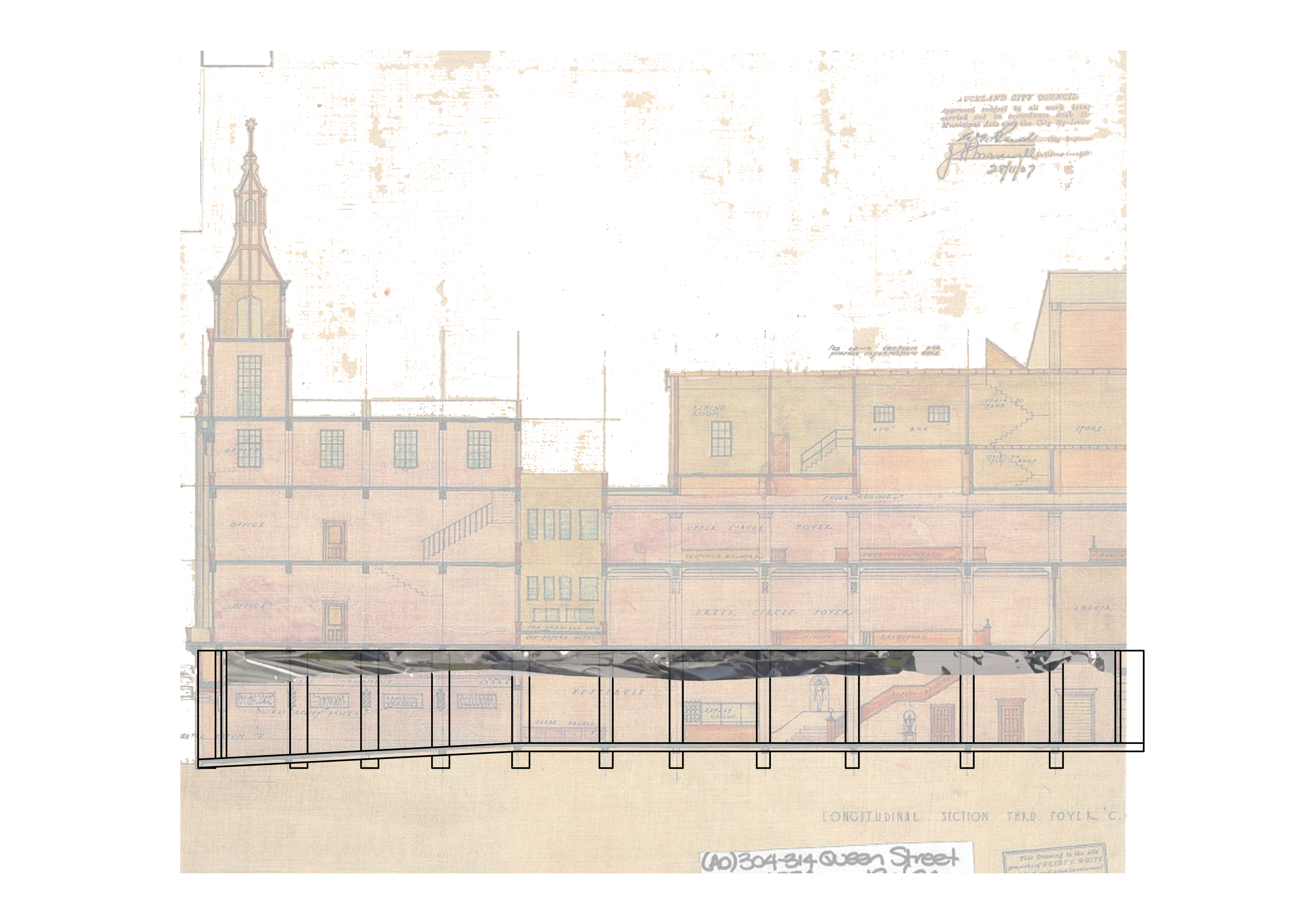 I have designed a public walkway in the St James Theatre foyer space between Queen St and Lorne St. The focus of my design was to break the expectation and habit of looking down and avoiding eye contact by subconsciously making the public gaze upwards and interact with the space.