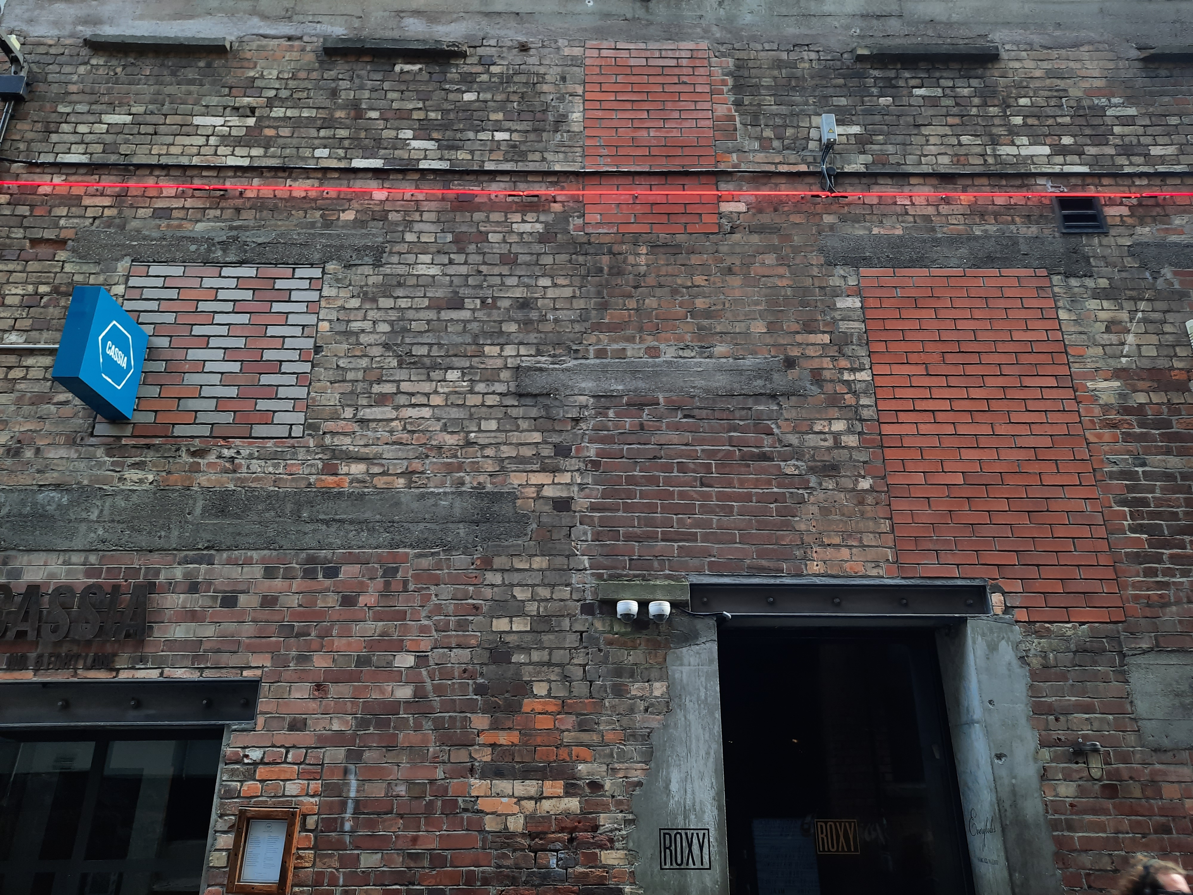 After gaining her sense of balance and direction again, Rose travelled down the lane with more confidence. She weaved between cars and people, zig zagging between the two containing walls of the space before stopping outside Roxy. Rose moved towards the wall to the left of the entrance to the club. She placed her hands on the exposed brick, mapping the texture with her fingertips.