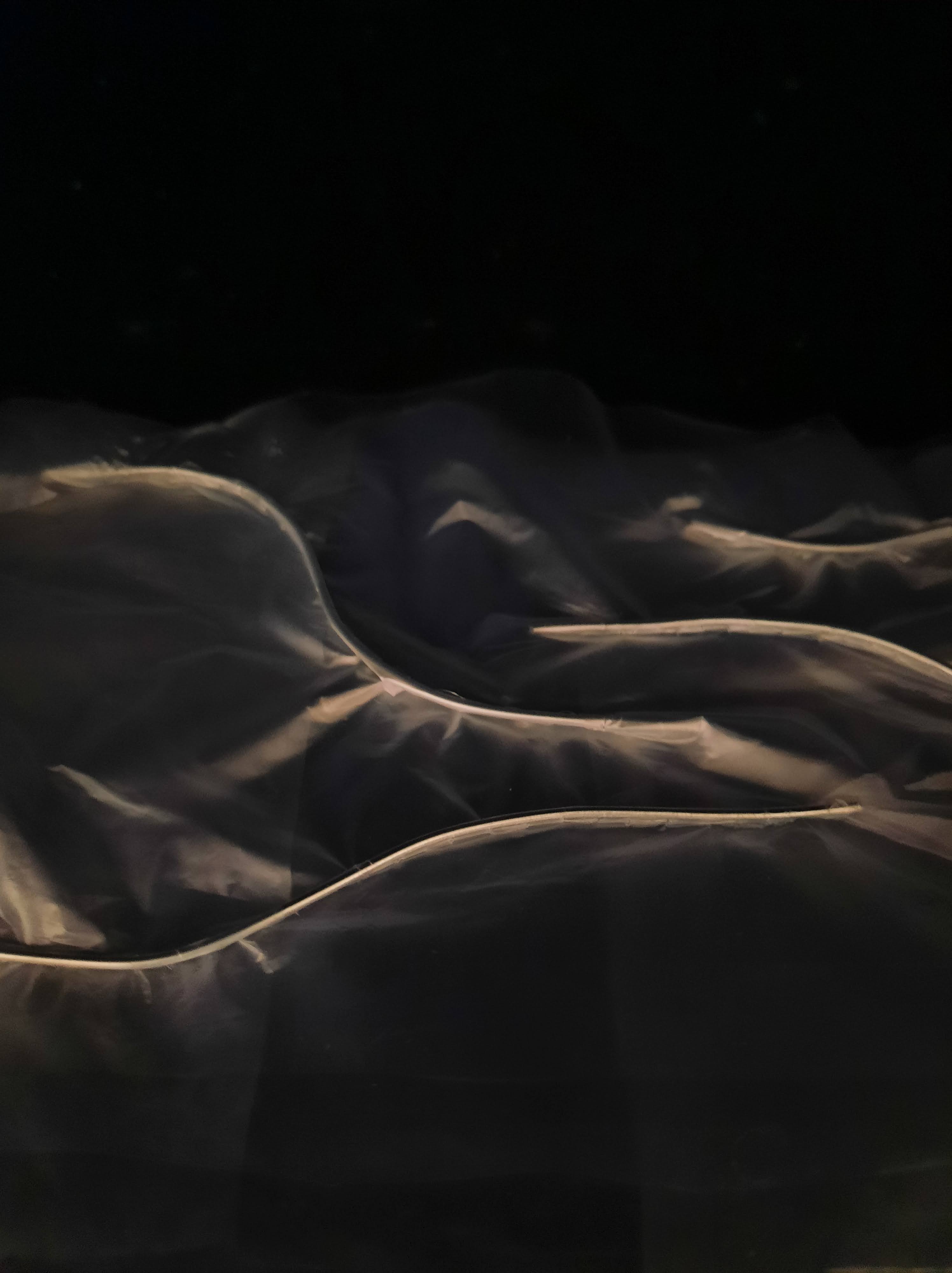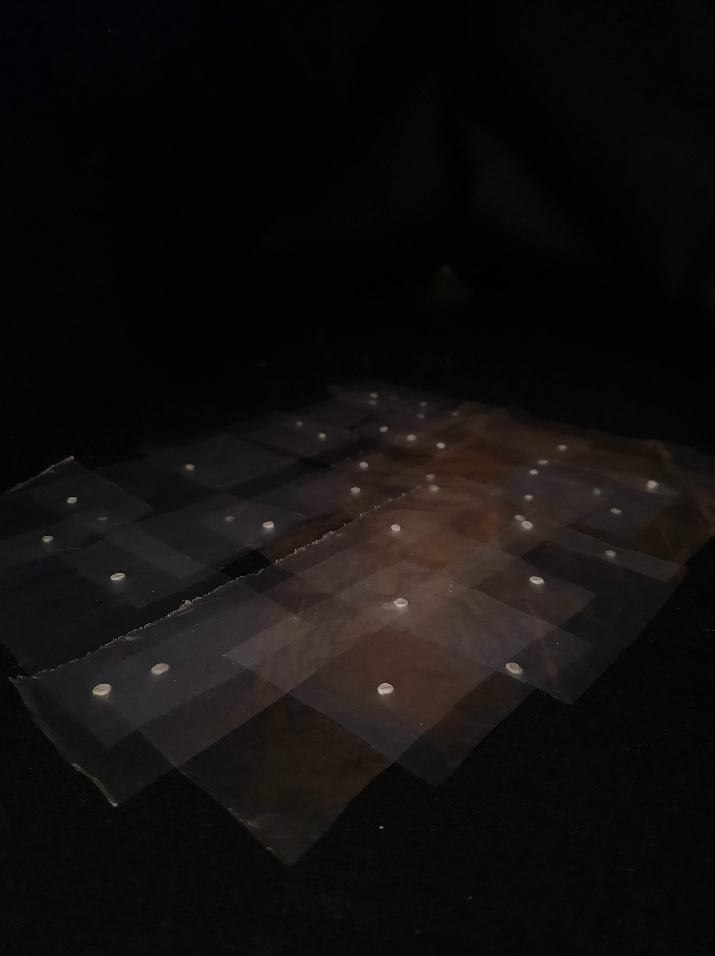 Projected image against the floors and walls of the spacePeeping through the curtains down the laneTransparency through the fabricAudience interaction and movement