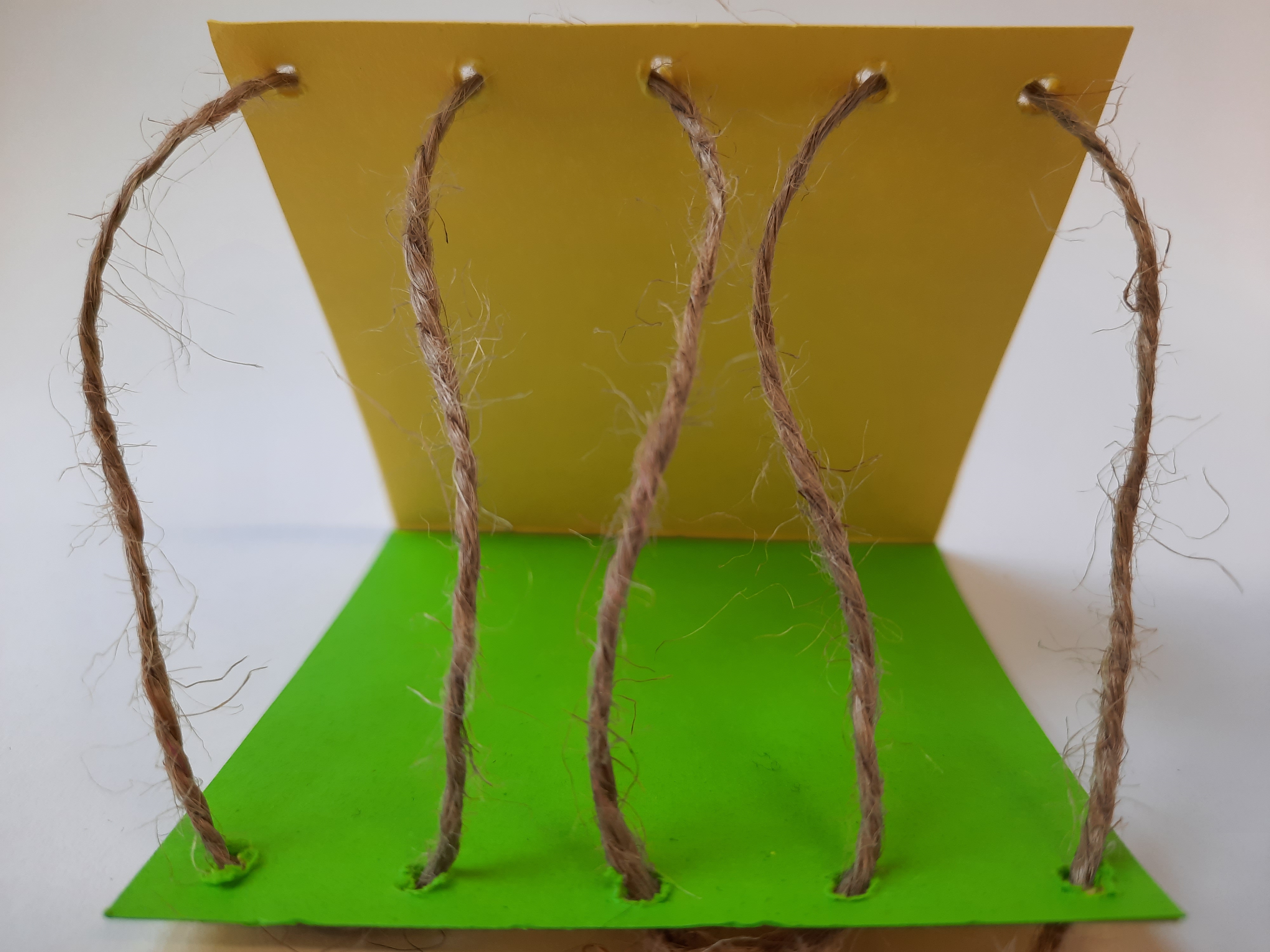 After forming the framing, I draped the fabric over and hand stitched it to particular points on the frame with nylon thread.